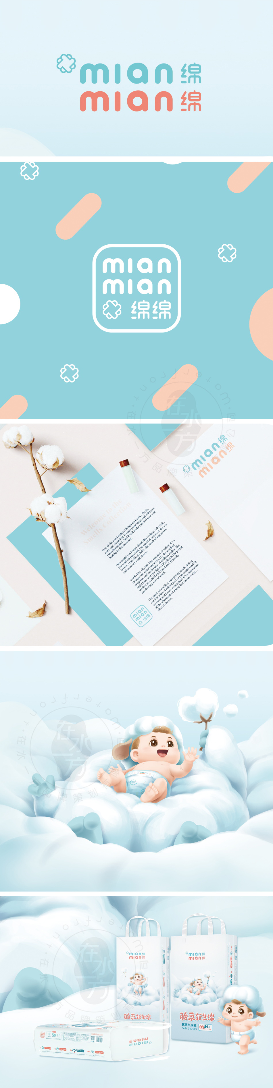 服務方案:貼合綿綿品牌訴求和產品屬性,以品牌核心理念為突破口,最大限度地凸顯品牌個性,展現現代化品質化的品牌形象,打造衛品領域的經典品牌。
