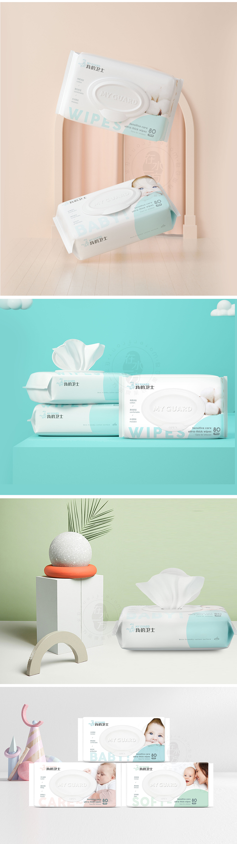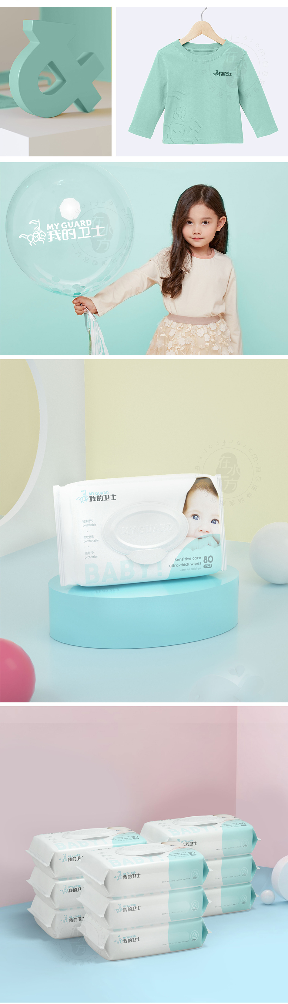 服務方案:國際化品牌形象塑造,結合新生代母嬰人群的認知特點,有意地塑造簡約清新有品質感的產品外觀,讓我的衛士成為新生母嬰家庭的青睞品牌。