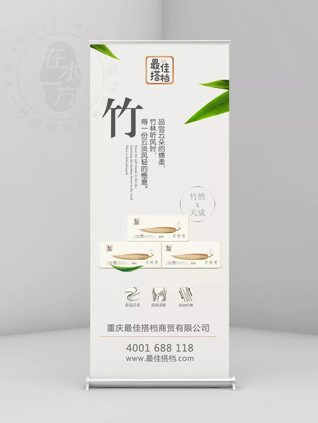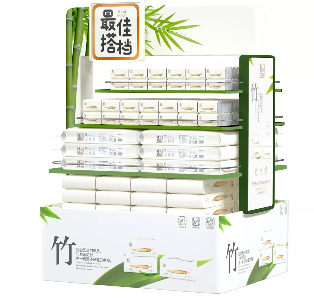 品牌終端視覺體系構建——“最佳搭檔”銷售場景一針見血,直擊產品主訴求的“竹”元素,將一片竹林“搬到現(xiàn)場”,賦予所有產品陳列顯著的現(xiàn)場感,有助于提升終端體驗。