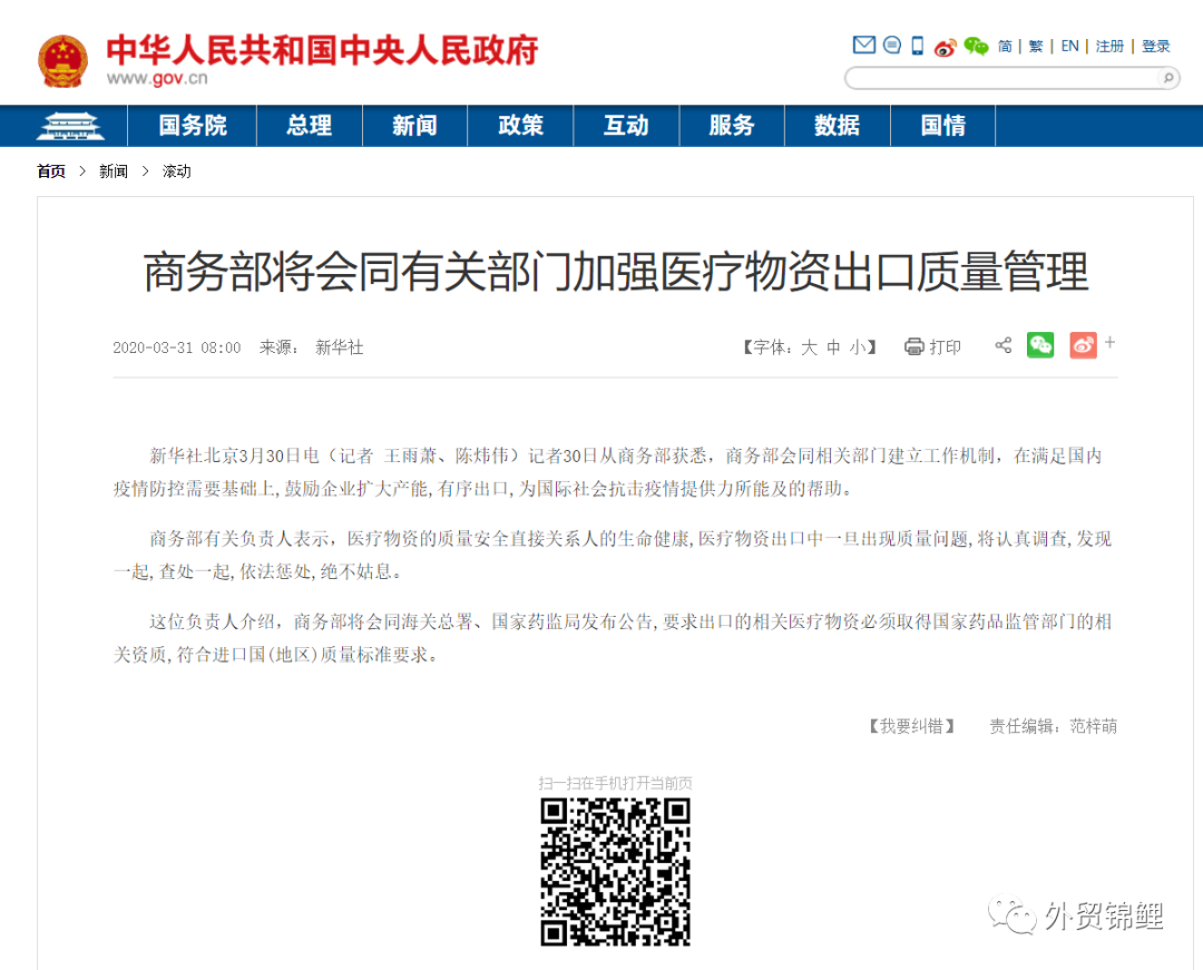 鑒于以上種種情況,商貿部為了規范醫療產品行業,尤以口罩產品為主,已經宣布對當前醫療物資出口增加必要的超常規管理,督促企業以更加負責任的態度接單生產并出口。