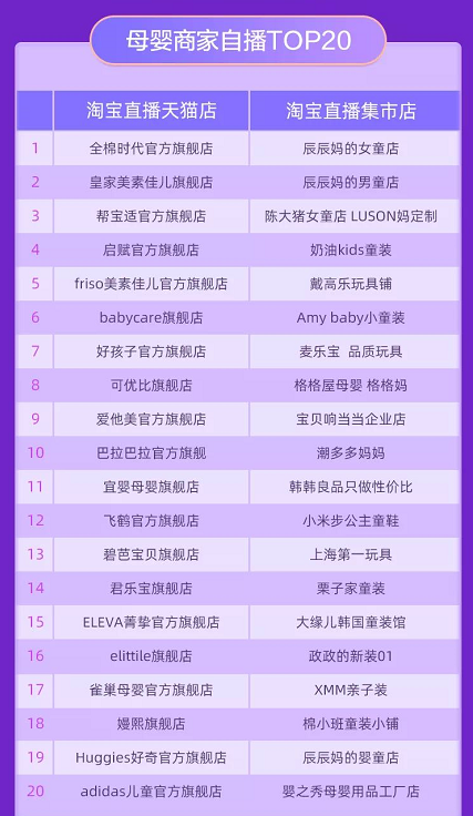 在母嬰領域,各品牌也在大力布局直播,據淘寶公開數據,6月1日~6月18日母嬰商家自播TOP榜,幫寶適、babycare、好孩子、可優(yōu)比、愛他美、巴拉巴拉、好奇、Adidas等品牌的天貓官方旗艦店紛紛登榜。上榜母嬰親子TOP榜的品牌,在直播上也同樣表現優(yōu)秀。此次618大戰(zhàn)中,直播功不可沒,已經成為商家業(yè)績增長一大新動力。