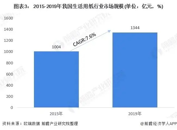 這一時期中國經濟運行總體平穩(wěn)、穩(wěn)中有進,中國生活用紙市場在此大背景下繼續(xù)保持穩(wěn)定增長,行業(yè)規(guī)模從2015年的1004億元人民幣,增長到2019年的1344億元人民幣,CAGR為7.6%。
