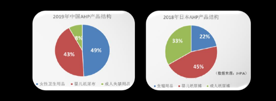 雖然這個增長率看似很高,但就行業規模來看,2019年中國成人失禁用品市場規模占比僅為8%,而日本2018年成人紙尿褲占比卻高達33%;在美國,成人失禁用品市場規模也是大于女性衛生巾的市場規模的。
