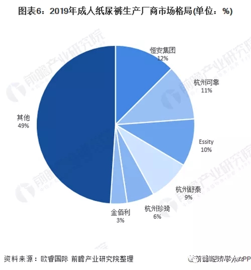 在成人紙尿褲生產廠商中,恒安集團、杭州可靠、Essity市場份額超過10%。排名前六的成人紙尿褲生產廠商市場份額為51.04%,市場集中度相對較高,生產廠商之間市場份額沒有拉開明顯的差距,市場競爭相對激烈。.jpg)