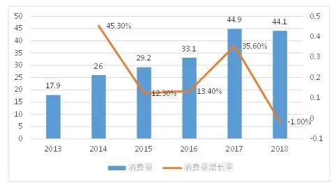 從消費量來看,2013年以來,我國成人失禁用品的消費量增長較為迅速,從2013年的 17.9億片增加至2018年的44.1億片,年均復合增長率達到19.8%。