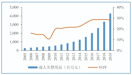 中國成人失禁用品市場保持高速增長。據 Euromonitor 統計數據,2019 年全球成人失禁用品規模達到 96 億美元,同比增長 8.87%,2019 年中國成人失禁用品零售規模 43 億人民幣,同比增長28.49。而在所有吸收性衛生用品中,成人失禁護理產品所占比重也上升到8.1%。