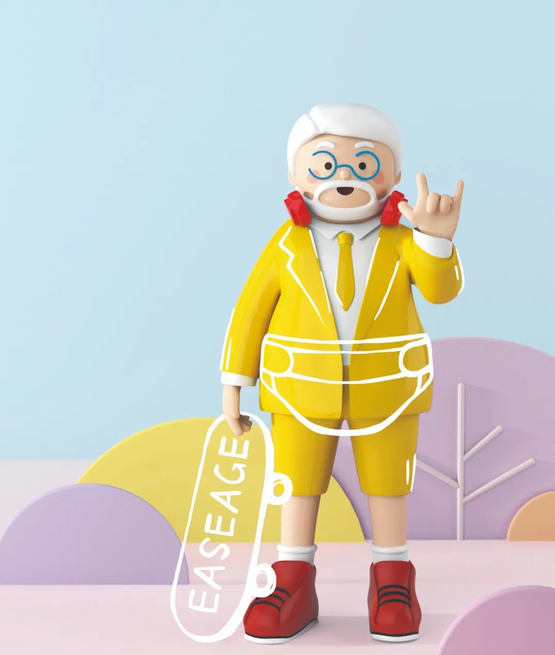 成人護理界第一位“老頑童”形象代言人由此誕生——將頭發梳成年輕模樣,穿上一身帥氣西裝,最潮的BEATS耳機,最酷的ROCK手勢,態度還是要有的。輕裝上陣,盡情搖擺,一切要帥。
