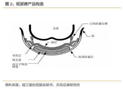 這些面層材料中,非常重要的除了導流層的打孔無紡布,還有更柔軟、親膚性好、在亞太地區占有較高市場份額的熱風無紡布。目前中國主要的熱風無紡布生產商有延江股份、北京大源、睿智三家公司,其中睿智為日本JNC在華獨家企業,延江股份為行業龍頭。