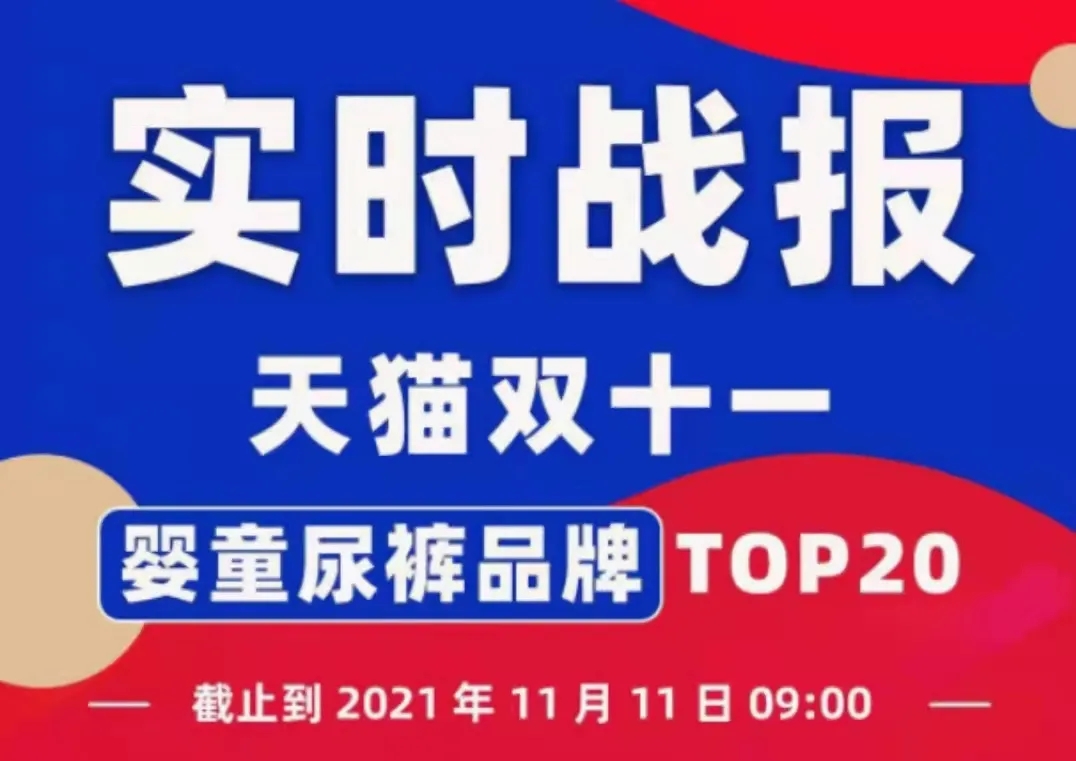 2021年10月20日晚8點(diǎn),天貓雙十一預(yù)售正式開(kāi)啟,截止到11月11日9:00,天貓雙十一紙尿褲排名榜單TOP20出爐。