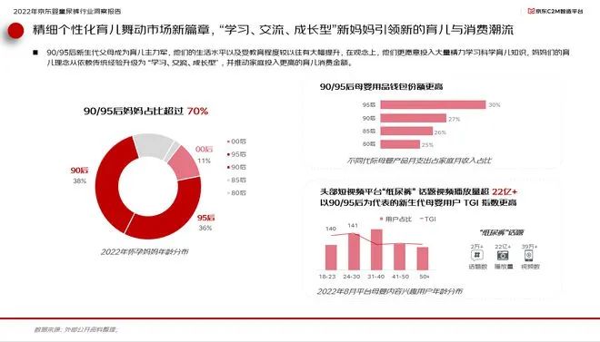 近日,京東零售母嬰采銷部聯合京東C2M智造平臺聯合推出《京東嬰童尿褲行業趨勢洞察》,報告顯示:90/95后新生代父母成為育兒主力軍,學習、交流、成長型新媽媽引領新的育兒與消費潮流;嬰童尿褲品牌競爭加劇,國貨玩家強勢崛起,市場豐富度提升;線上渠道銷售占比逐年提升,線上綜合電商成文嬰童尿褲最大銷售陣地,京東品質保障讓育兒更安心。