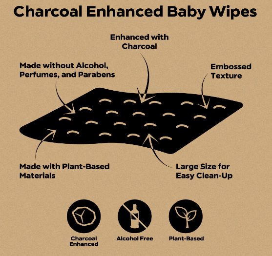 Dyper 還推出了一款木炭增強型嬰兒濕巾,該濕巾具有低過敏性,由 100% 植物性材料制成,并添加了少量活性炭。它們是 98% 純水,不含酒精、香料或對羥基苯甲酸酯。具有壓花紋理,可實現更徹底的清潔,并提供更大尺寸,更容易清潔。